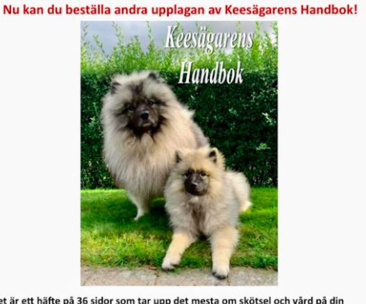 Keesägarens handbok är ett häfte som tar upp det mesta om skötsel och vård på din Keeshond. Andra upplagan av handboken går att beställa.